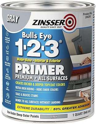 Zinsser 286258 Bulls Eye 1-2-3 All Surface Primer, Quart, Gray
