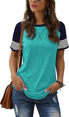 Adibosy Women Summer Casual Shirts: Short Sleeve Striped Tunic Tops - Womens Crew Neck Tee Tshirt Blouses